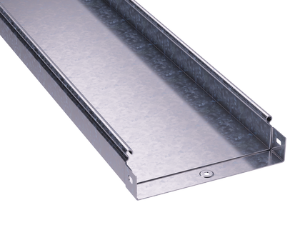 Неперфорированные лотки надежно защищают кабель от повреждений, а при использовании их вместе со специальными уплотнителями и крышками - предотвращают попадание мусора и жидкости в кабельный лоток. Степень пыле- и влагозащиты в этом случае составляет IP 44. Лоток имеет высоту стенки 50 мм и ширину 500 мм, толщина стали - 1,5 мм, длина секции - 3000 мм.