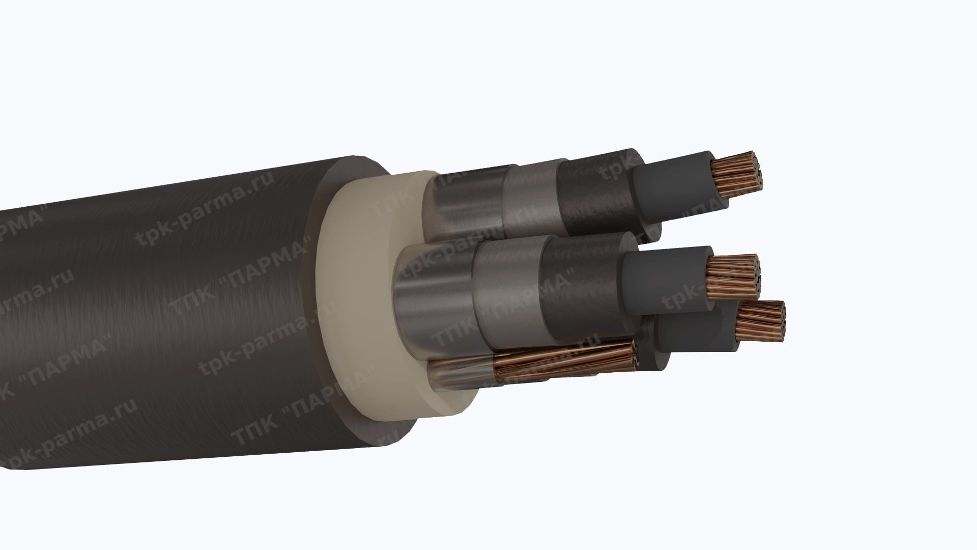 1. Три многопроволочные медные круглые основные жилы с площадью номинального поперечного сечения 25 мм2, соответствующие 5 классу по ГОСТ 22483-2012.