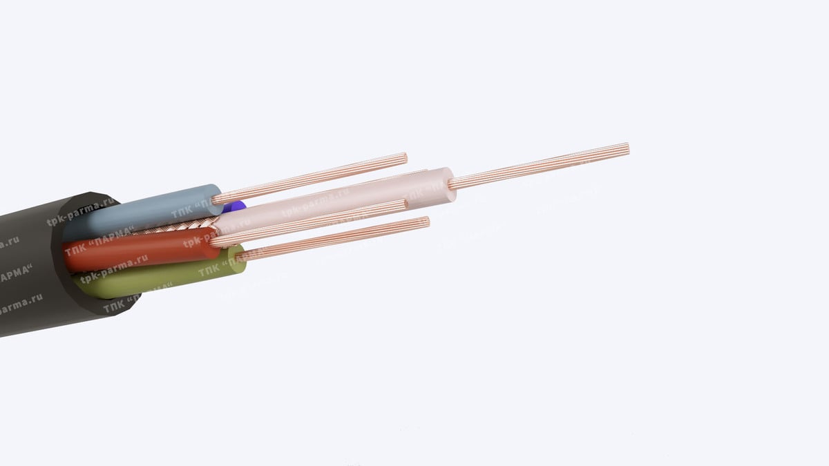 3. Экран поверх изоляции одной из пяти жил в виде оплётки из медных